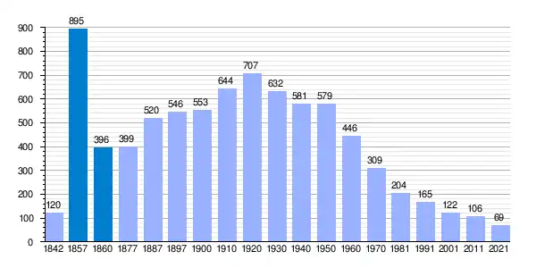 | Gráfica de evolución demográfica de Herguijuela del Campo[11] entre 1842 y 2021 |
