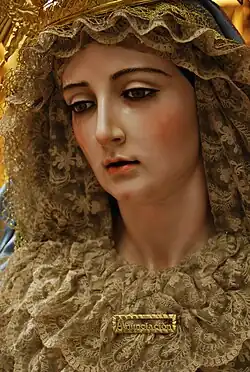 María Santísima de la Anunciación. el escultor hispalense Antonio Jesús Dubé Herdugo, la Imagen fue presentada en Sevilla los días 12 y 13 de septiembre del 2015 en el Monasterio del Espíritu Santo.[3] El día 20 de septiembre fue presentada en Madrid en el Monasterio de la Inmaculada y San Pascual (Clarisas). Fue bendecida por Monseñor Carlos Amigo Vallejo, Arzobispo Emérito de Sevilla, el 31 de octubre de 2015 en la Iglesia Parroquial del Carmen y San Luis.