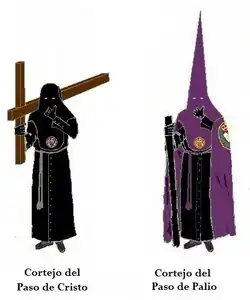 | Túnica | Antifaz morado Túnica negra Capa morada Botonadura y cíngulo morado | |
