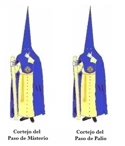 | Túnica | Antifaz azul Túnica hueso Capa azul Cíngulo dorado | |