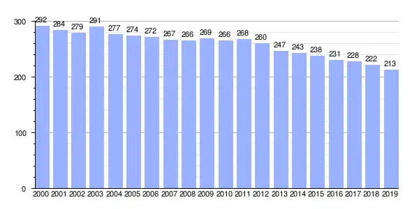 | Gráfica de evolución demográfica de Hermedelo entre 2000 y 2019 |