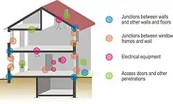 - ↑ F.R. Carrié, R. Jobert, V. Leprince (2012). “Contributed report 14. Methods and techniques for airtight buildings”, Air Infiltration and Ventilation Centre.