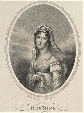 - ↑ van de Pas, Leo. «Hermine, Prinzessin von Anhalt-Bernburg-Schaumburg-Hoym». Genealogics .org. Consultado el 16 de marzo de 2010.