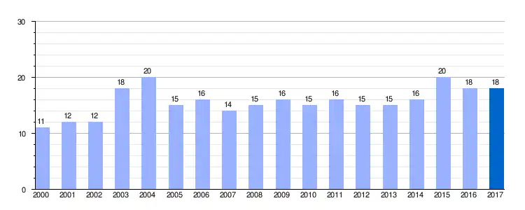 | Gráfica de evolución demográfica de Herrán entre 2000 y 2017 |