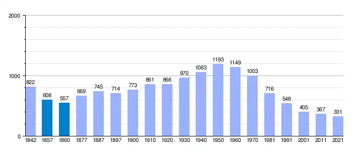 | Gráfica de evolución demográfica de Herreruela[9] entre 1842 y 2021 |