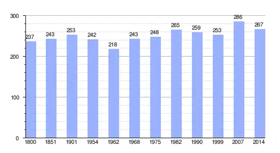 | Gráfica de evolución demográfica de Hiéville entre 1800 y 2014 |