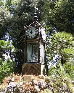 En 1873 el reloj de agua llegó a Roma y fue colocado en Villa Borghese, en una fuente señaladamente realizada por el arquitecto Gioacchino Ersoch.
