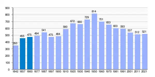 | Gráfica de evolución demográfica de Higueruelas[1] entre 1842 y 2021 |