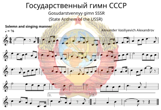 El Himno estatal de la Unión Soviética (ruso: Гимн Советского Союза, transliteración: Gimn Sovetskogo Sojuza) fue el himno nacional de la Unión Soviética. Reemplazó a La Internacional como el himno nacional el 15 de marzo de 1944. La letra fue escrita por Serguéi Mijalkov (nacido en 1913) en colaboración con Gabriel El-Reguistán y la música fue compuesta por Aleksandr Aleksándrov. El himno fue creado para que los soldados soviéticos sientan mayor patriotismo, porque responderían mejor a un himno dedicado a la Unión Soviética que a uno dedicado a un movimiento mundial. La canción fue originalmente el himno del Partido Bolchevique, con letra de Vasili Lébedev-Kumach en 1939.[1][2]