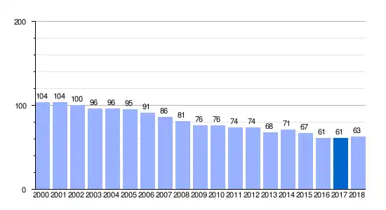 | Gráfica de evolución demográfica de Hinojar del Rey entre 2000 y 2018 |