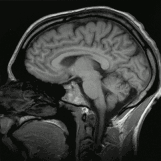 ![]() Cortes sagitales del contenido intracraneal humano normal. | ||