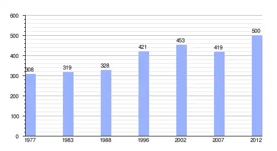 | Gráfica de evolución demográfica de Hipu entre 1977 y 2012 |