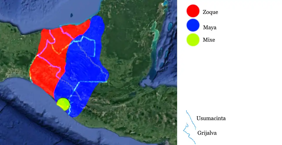 La región estuvo habitada por pueblos de diversas filiaciones lingüísticas y culturales. A diferencia de la opinión popular que considera a este rincón del mundo exclusivamente como parte del área maya, las investigaciones arqueológicas y etnolingüísticas han puesto en evidencia que a lo largo del tiempo, además de los mayas, distintos grupos como los mayas, los zoques, los mixes y los chiapanecas ocuparon el territorio.[2]: 27–32 Las fronteras entre estos grupos variaron con el tiempo a medida que interactuaron entre sí, que llegaron nuevas migraciones y que evolucionaron sus propias lenguas y culturas.[3]: 36