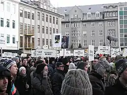 En octubre de 2008, producto de la crisis financiera el sistema bancario islandés se derrumbó, obligando a Islandia a pedir grandes préstamos al FMI y a países amigos. Protestas generalizadas a fines de 2008 y 2009 dieron lugar a la dimisión del gobierno de Geir Haarde, que fue sustituido el 1 de febrero de 2009 por una coalición integrada por la Alianza Socialdemócrata y el Movimiento de Izquierda-Verde. La socialdemócrata Jóhanna Sigurðardóttir fue nombrada primer ministro, convirtiéndose en la primera mujer jefe de gobierno abiertamente lesbiana de la era moderna.[5][6]