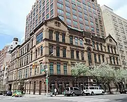 Nueva York se convirtió en el centro financiero de los Estados Unidos antes de la Guerra Civil, especializándose en valores ferroviarios. en 1900 se volvió aún más dominante y comenzaba a acercarse a Londres como un centro financiero mundial.[82][83] Hubo miles de banqueros y financieros exitosos; una figura central fue J. P. Morgan, que mediante J. P. Morgan estableció programas nacionales de financiación para el acero, los implementos agrícolas, el transporte marítimo y otras industrias. También financió gran parte de los esfuerzos bélicos británicos y franceses en la Primera Guerra Mundial.[84] John D. Rockefeller, de Standard Oil, se expandió desde una posición dominante en el petróleo a otras industrias además de la banca. Andrew Carnegie dominó el acero hasta que se vendió a Morgan en 1901. Después de 1900, Rockefeller y Carnegie dedicaron en gran medida su interés a la filantropía, al igual que Morgan hasta cierto punto. Con la creación del Sistema de la Reserva Federal en 1913, el Banco de la Reserva Federal de Nueva York se convirtió en un jugador poderoso bajo su dinámico presidente Benjamin Strong.[85] en 1917, Nueva York estaba financiando los esfuerzos de guerra mundial de Gran Bretaña, Francia y otros aliados. En los años 1920, Nueva York había superado a Londres como centro bancario mundial. La Bolsa de Valores de Nueva York fue el foco nacional de creación de riqueza y especulación hasta que sus acciones colapsaron repentinamente a fines de 1929, desencadenando la Gran Depresión mundial.[86]