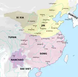 Antes del ascenso de los yurchen de la dinastía Jin, la dinastía Song había estado durante varios siglos en statu quo con los Xia occidentales y los kitanos de la dinastía Liao. Este equilibrio se rompió cuando la dinastía Song selló una alianza militar con los yurchen con el fin de eliminar la dinastía Liao. Una vez que los Liao fueron derrotados, los yurchen se volvieron contra los Song, lo que condujo a la caída de los Song del Norte y la posterior creación de los Song del Sur.