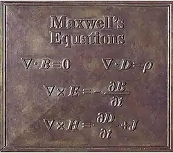 - ↑ En realidad Maxwell escribió veinte ecuaciones en cuaterniones, que él mismo redujo más tarde a trece. Después de su muerte Oliver Heaviside resumió esas trece ecuaciones en las cuatro diferenciales que hoy se asignan erróneamente a Maxwell.