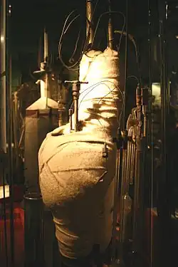 - ↑ Una alternativa, también con una explicación eléctrica fue ofrecida por Paul Keyser. Sugirió que un sacerdote o curandero, usando una espátula de hierro para preparar una poción de compuestos basados en vinagre en un recipiente de cobre, podría haber sentido un cosquilleo eléctrico, y utilizado el fenómeno para la electro-acupuntura, o para sorprender a los suplicantes electrificando una estatua de metal.