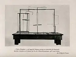 El físico y matemático francés André-Marie Ampère (1775-1836) está considerado como uno de los descubridores del electromagnetismo. Es conocido por sus importantes aportaciones al estudio de la corriente eléctrica y el magnetismo que constituyeron, junto con los trabajos del danés Hans Chistian Oesterd, el desarrollo del electromagnetismo. Sus teorías e interpretaciones sobre la relación entre electricidad y magnetismo se publicaron en 1822, en su Colección de observaciones sobre electrodinámica y en 1826, en su Teoría de los fenómenos electrodinámicos. Ampère descubrió las leyes que determinan el desvío de una aguja magnética por una corriente eléctrica, lo que hizo posible el funcionamiento de los actuales aparatos de medida. Descubrió las acciones mutuas entre corrientes eléctricas, al demostrar que dos conductores paralelos por los que circula una corriente en el mismo sentido, se atraen, mientras que si los sentidos de la corriente son opuestos, se repelen. La unidad de intensidad de corriente eléctrica, el Ampère (símbolo A), castellanizada como Amperio, recibe este nombre en su honor.[72]