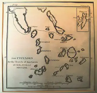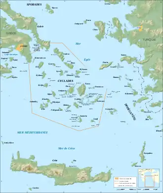 - ↑ ”The population of the Cyclades is essentially Greek in origin”. Louis Lacroix, p. 431.