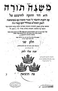 Pero la gloria de los judíos en Italia consiste en haber impreso, desde la década de 1470, los primeros libros en hebreo y judeo-arameo. Las corporaciones alemanas, incluida la de los impresores, al estar prohibidas a los judíos, los impresores judíos alemanes llegaron a establecerse en Italia en 1465. El primer libro en hebreo fue producido en 1475[38] y la primera Biblia hebrea se publicó en 1482 en Bolonia, mientras que el primer libro de oraciones con vocales, el Majzor Roma, de 1485.[39] Los impresores más famosos son la dinastía Soncino, originaria de Alemania y asentada en Soncino, un pequeño pueblo de Lombardía; como resultado de la persecución, emigraron a Constantinopla y Tesalónica en el siglo XVI.[40] Estos impresores contribuyeron a la difusión de la Biblia y el Talmud y, en general, de los textos judíos en toda Europa.