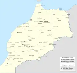 ![]() Mapa de comunidades judías históricas en territorio marroquí. | ||