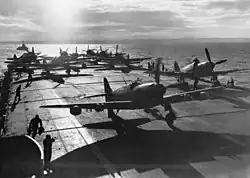 El papel de la RAAF en la ofensiva aérea estratégica en Europa forman la principal contribución de Australia a la derrota de Alemania. Alrededor de 13.000 aviadores australianos sirvieron en docenas de escuadrones británicos y cinco en el Mando de Bombardeo de la RAF sufriendo fuertes pérdidas durante las redadas en las ciudades alemanas y objetivos en Francia.[117] Las tripulaciones de Australia en el Comando de Bombarderos tuvo una de las más altas tasas de bajas que cualquier otra parte de las fuerzas armadas de Australia durante la Segunda Guerra Mundial, sumando casi el 20 por ciento de todas las muertes en combate de las fuerzas de Australia; 3.486 murieron y cientos más fueron hechos prisioneros.[118] Aviadores australianos en escuadrones de bombarderos ligeros de combate también participaron en la liberación de Europa Occidental entre los años 1944 y 1945[119] y dos escuadrones de la RAAF de patrulla marítima sirvieron en la Batalla del Atlántico.