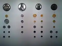 Las siliqua del rey suevoRequiario, de las que se han hallado cinco piezas en plata, y una serie de solidus imitativos (de los del emperador Honorio) se han interpretado como prueba de la existencia de una circulación económica, no únicamente conmemorativa, y de la existencia continuada de una ceca en Braga.[9]