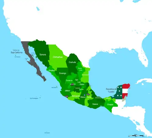 | El distrito de Campeche se separa del estado de Yucatán, creándose así el territorio de Campeche.[42] | |||||||||||||||||||||||||
