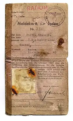 Antes de la Segunda Guerra Mundial, había 3 500 000 judíos en Polonia,[17] que vivían principalmente en las ciudades: alrededor del 10% de la población general. La base de datos del Museo POLIN de Historia de los Judíos Polacos ofrece información sobre 1926 comunidades judías de todo el país.[18] Tras la conquista de Polonia y la asesinato de intelectuales de 1939,[19] las primeras medidas antijudías alemanas consistieron en una política de expulsión de los judíos de los territorios anexionados por el Tercer Reich polaco.[20] Las provincias más occidentales, de Gran Polonia y Pomerelia, se convirtieron en nuevos Reichsgaue alemanes denominados Danzig-Prusia Occidental y Wartheland,[21] con la intención de germanizar completamente mediante la colonización de colonos (Lebensraum).[22] Anexionada directamente al nuevo distrito de Warthegau, la ciudad de Łódź absorbió una afluencia inicial de unos 40 000 judíos polacos forzados a abandonar las zonas circundantes.[23] Un total de 204 000 judíos pasaron por el gueto de Łódź. Inicialmente, iban a ser expulsados al Generalgouvernement.[24] Sin embargo, el destino final del traslado masivo de judíos quedó abierto hasta que se puso en marcha la Solución Final dos años más tarde.[25]