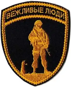 El término surgió por primera vez durante la adhesión de Crimea a Rusia en 2014, cuando tales fuerzas ocuparon y bloquearon el Aeropuerto Internacional de Simferópol y la mayoría de las bases militares de las Fuerzas Armadas de Ucrania en Crimea, como así también el Edificio del Consejo Supremo de Crimea en Simferópol.[8] Por otro lado, el presidente de Rusia, Vladímir Putin, negando la participación de las Fuerzas Armadas de Rusia, y específicamente de sus fuerzas terrestres, declaró que se trataba de una milicia local que había incautado sus armas al Ejército de Ucrania,[9] mientras que los medios de comunicación de Rusia se refirieron a ellos con el eufemismo "gente educada" (en ruso: вежливые люди, romanizado: vezhlivye lyudi).[10]