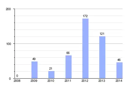| Gráfica de evolución de la deuda viva del ayuntamiento entre 2008 y 2014 |