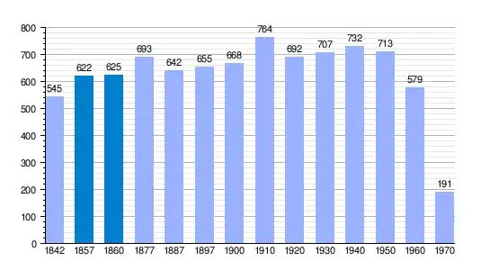 | Gráfica de evolución demográfica de Horcajada de la Torre[3] entre 1842 y 1970 |