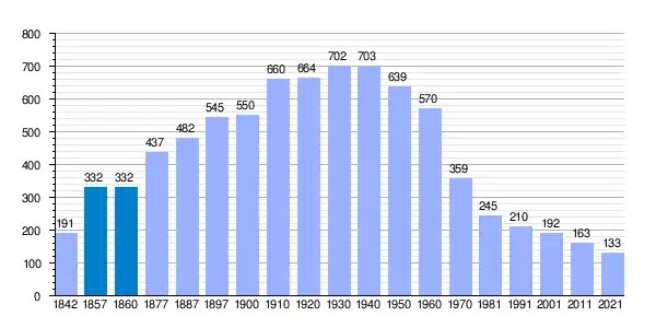 | Gráfica de evolución demográfica de Horcajo de Montemayor[4] entre 1842 y 2021 |