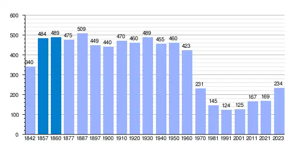 La población fue creciendo de forma muy lenta hasta el siglo XX. En 1930, se alcanzó el techo poblacional con 489 habitantes. A partir de esa fecha se inicia un intenso declive; según el Nomenclátor de 1940 había una población de derecho de 455 habitantes y según el Instituto Nacional de Estadística, los residentes mayores de edad (21 años), en 1955 eran 300 habitantes.