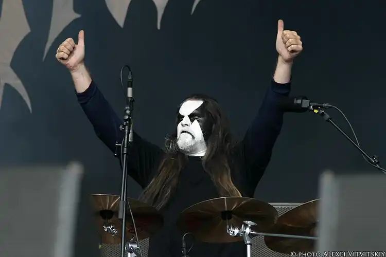 ![]() Horgh actuando con Immortal en el festival de Tuska de 2007. | ||