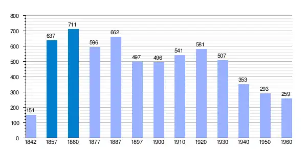 | Gráfica de evolución demográfica de Ortoneda (Pdo. de Tremp)[1] entre 1842 y 1960 |