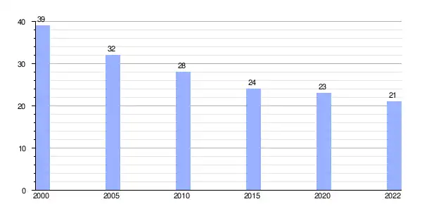 | Gráfica de evolución demográfica de Hospital (aldea) entre 2000 y 2022 |