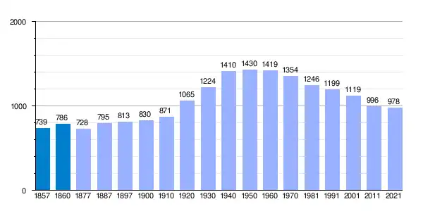 | Gráfica de evolución demográfica de Hospital de Órbigo[6] entre 1857 y 2021 |