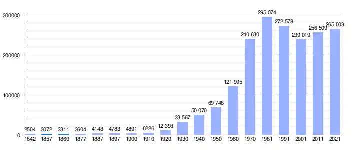 | Gráfica de evolución demográfica de Hospitalet de Llobregat[15] entre 1842 y 2021 |