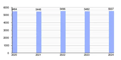 Hasta 2024 la población era de 5507 habitantes,[2] con una densidad de población de 69,55 hab/km².[2]