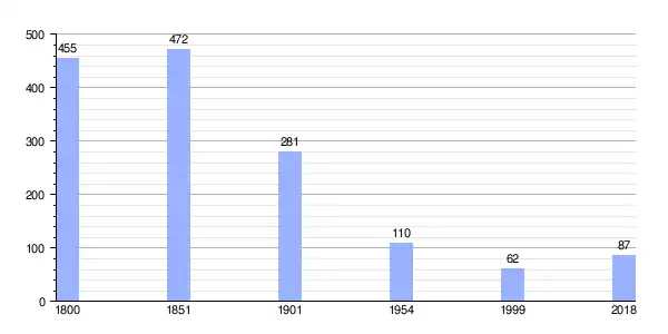 | Gráfica de evolución demográfica de Hostiaz entre 1800 y 2018 |