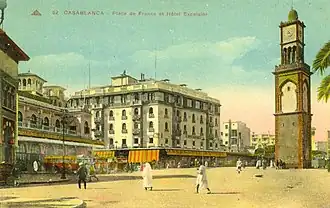 En 1901, la ciudad de Casablanca contaba con tres hoteles. En 1911, después de la ocupación francesa de Casablanca, el comandante francés Charles Martial Joseph Dessigny contabilizó seis o siete hoteles y cuatro o cinco restaurantes europeos, señalando que "un hotel equipado con comodidades modernas es deseable y estaría seguro de tener una buena clientela". El Excelsior satisfacía los planes del comandante, quien en julio de 1908 había sido puesto a cargo de un departamento de instalaciones públicas creado por las autoridades francesas. El Hotel Excelsior fue construido en el lugar que había sido un matadero. Inicialmente imaginado como un edificio de seis pisos, el hotel y su vecino Magasins Paris-Maroc representó un cambio con respecto a la medina adyacente en términos de escala.[2]: 60–62