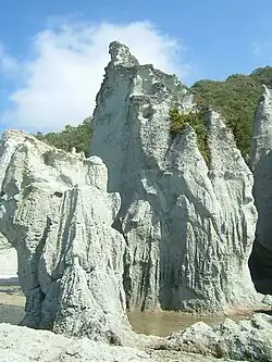 Las rocas están formadas por lapilli de toba volcánica del Plioceno (4,2 a 4,1 millones de años), que ha sido desgastada por la erosión del mar hasta alcanzar las formas actuales.[4][2] Dada la naturaleza áspera y frágil de la piedra, esta presenta una acción de la lluvia y el mar notables, que erosionaron una capa de riolita de color blanco azulado pálido. La parte superior suele presentar formas similares a los lapiaces, afiladas y con formas de pirámide o rectangulares, en tanto que a lo largo del resto de su superficie presenta numerosas muescas.[3]