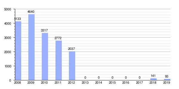 Gráfica de evolución demográfica de Huércal de Almería[22] entre 1842 y 2021