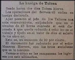 - ↑ «Huelga Ferroviaria de Tolosa 1896.». Archivado desde el original el 5 de marzo de 2016. Consultado el 12 de mayo de 2015.