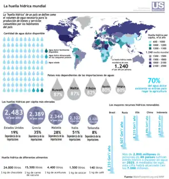 - ↑ La Huella Hídrica de España. Ministerio de Medio Ambiente y Medio Rural y Marino, 2011. Fernando Esteban Moratilla, Miriam Molina Moreno y Mario Fernández Barrena. ISBN 978-84-491-1074-0. Pp:177 [3]