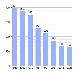 Población de derecho según los censos de población del INE.     Población de hecho según los censos de población del INE.Entre el censo de 1950 y el anterior, aparece este municipio porque se segrega del municipio Valle de Valdelaguna.[7]