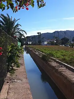A lo largo de la huerta de Murcia existen muchos canales de agua que tienen diferentes nombres según circulen aguas vivas procedentes de las acequias mayores o aguas muertas, de drenaje o de escorrentía. Así existen: