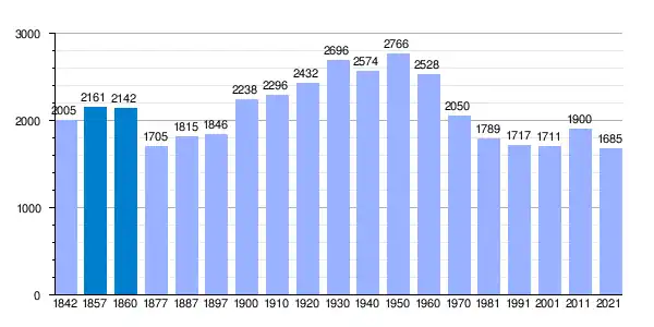 | Gráfica de evolución demográfica de Huerta de Valdecarábanos[4] entre 1842 y 2021 |